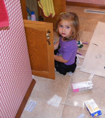 This picture of Cassidy "caught in the act" is adorable. Good thing is was mostly band aids;)