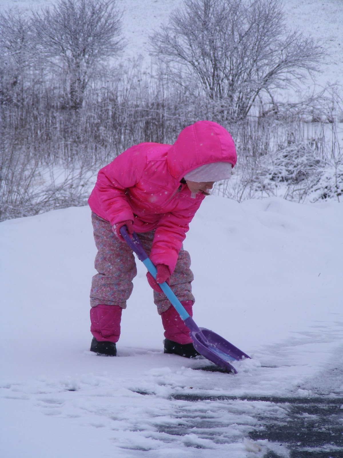 We had a bit more snow yesterday than I anticipated and although it didn't really stick on the paved surfaces, Cassidy insisted on shoveling....she didn't even want to go sledding (so I did!!!).