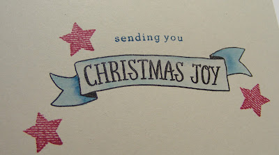 I did do a little more stamping on the inside, using Endless Wishes and Stitched with Cheer, watercoloring the banner a bit with Dapper Denim ink: