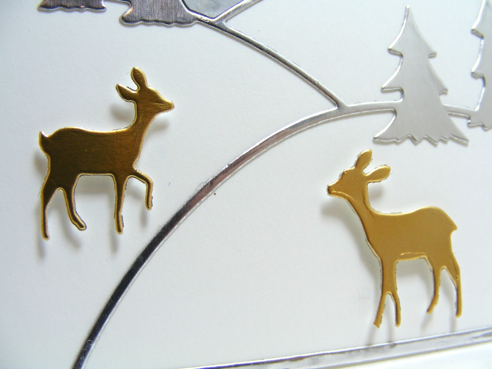 Such a pretty card, LeAnne! Love those hills with the pops of gold & silver from the trees & deer! Beautiful Christmas card indeed! Cassidy looks like she's having fun but I bet she was cold! It's been so cold out...I guess Mother Nature decided we needed a taste of winter before spring arrives Monday. TFS! Stay warm & Happy St Patrick's Day to you! :)