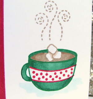 The little cup of cocoa was stamped in Call Me Clover and Crumb Cake inks, accented with SU blends: