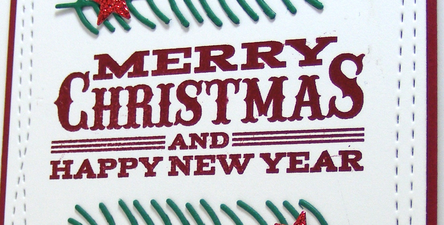 I paired them with some Poppy Stamps pine bough dies and a wonky-stitched mat, then added some red glimmer paper stars: