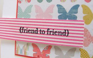 Sooooo.....I was experimenting with some of my cheapo watercolor paper and the florals from Flower Patch, and it just wasn't working out. I diecut them, then let them dry, and surprisingly, after they dried, they kind of curled up and had a soft look to them, so I decided to give them a second chance, LOL! I liked Tracey's brightly-colored diecut flowers, but I originally was going to use a more organic style DSP for my background, hence the watercolor look. So, after all that, here's my card:
