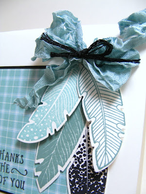 I've used the colors of Pacific Point, Poppy Parade, Call Me Clover and Soft Seafoam for my card today. The card base is Soft Seafoam, and I added a piece of lined paper in Poppy Parade (from the first time SU offered it), under a piece of Delightfully Detailed Laser Specialty paper that I carefully brayered with Pacific Point ink.