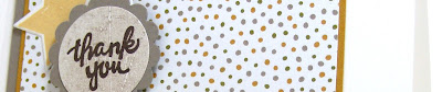 I cut two tags, one in Crumb Cake and one in the floral DSP; on the crumb cake one, I stamped a sentiment from A Big Thank You in Berry Burst and added some leaves around the outside edge. I filled in the leaves with some Frost White shimmer paint and sponged the edges a bit with some white craft ink. I added a little "thank you" and another leaf to the bottom of the tag:
