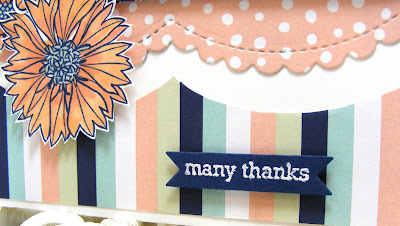 I love things in threes, so when I saw this, I knew I had to play! I sort of did the sketch from memory once I saw it, so I "forgot" that the sentiment band went all the way across...hopefully it will be okay! The first card is for someone who did a really nice favor for me, so I made her a thank-you card using some American Crafts Shimelle papers and a couple of stamp sets: