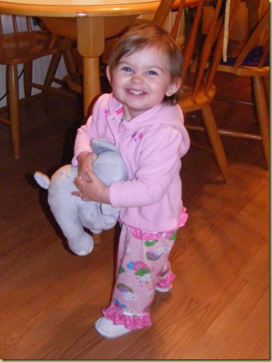 DD had no water this morning, so they arrived at my house in their PJs and slippers! Oh, and Miss Ellie the Elephant, too! TFL!