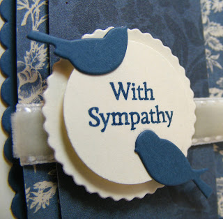 Unfortunately, I needed another sympathy card for a beloved church member; I chose the left top diagonal of blue, circular element and ribbon for my card: