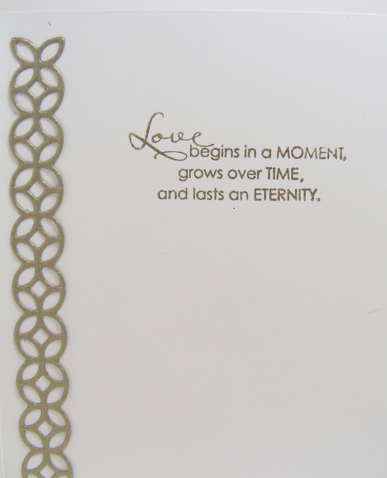 The photos just don't do it justice!! For the inside, I stamped a sentiment from Occasional Quotes in Gold Encore ink and added another gold diecut down the left side:
