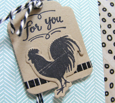 I hadn't used Wood Words for a while, so I stamped and diecut a little tag using the rooster image and tied it with some black and white baker's twine! Again, a generic sentiment to use for the future!