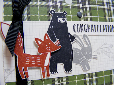 I opted to do something a little different than a traditional blue card; my nephew is an avid outdoorsman, so I thought these little forest creatures from Thankful Forest Friends would be fun: