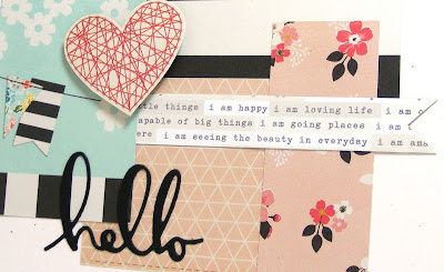 I stamped the sentiment with Flirty Flamingo on a scrap of VV and used one of the square Stitched Shape dies to cut and emboss it, and added my little snippet of ribbon in Powder Pink, below it: