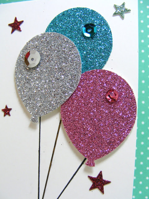 To pep up the sparkle, I added some shimmery stars as well, and accented each balloon with a sparkly sequin!! You can never have too much sparkle!