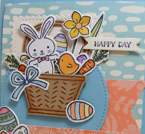 Way to get so much into the sketch for your sweet Easter card! All the stamped and die cut images are super cute!