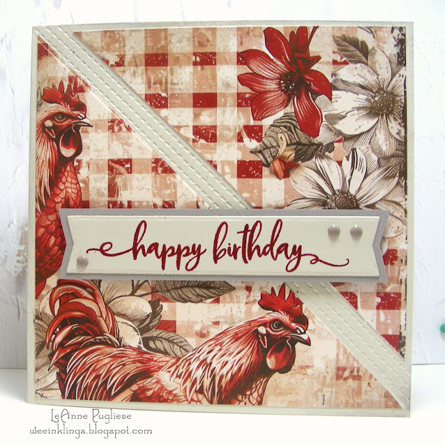 What beautiful paper, LeAnne! You make the most awesome cards from your papers! I'm loving the red and white checks and the beautiful roosters! The stitching adds a WOW factor!
